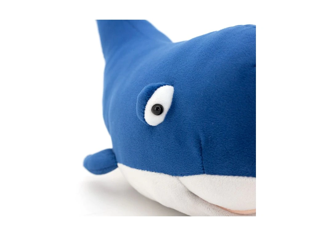 Plyšová velryba zaujme svým klidným a laskavým výrazem, který evokuje pocit bezpečí a pohody. Je vyrobena z příjemného materiálu, který je ideální pro mazlení, držení v náručí i kreativní hry, ve kterých může velryba vystupovat jako ochránce, průvodce nebo věrný společník.