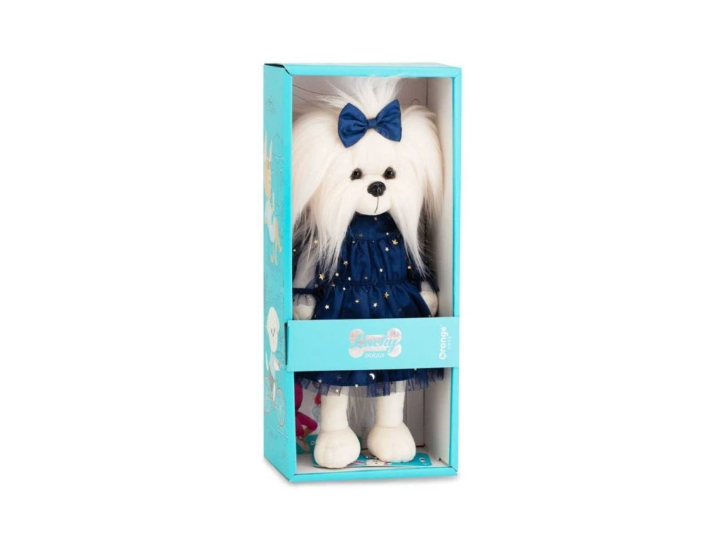 Plyšová fenka maltézského psíka Mimi v modrých šatech s hvězdami je nejen roztomilá, ale i interaktivní. Tento plyšák s kostřičkou umožňuje upravit pozice do různých poloh – může sedět, stát nebo se naklánět, což podporuje fantazii, kreativitu a interaktivní hry.